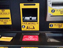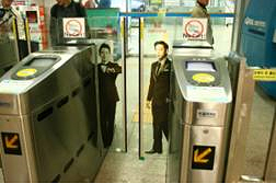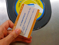 Upon exiting, place the card on the card reader if you are using either a single-use transportation card or a T-Money card. If you have an Express Train Pass, place it into the slot in the gate (see photo above).