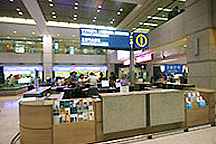 Check your bus route at either of the Airport Information Desks between Gates 3 & 4 or Gates 11 & 12 on the arrival floor (1F), or the Airport Bus Ticket booth. Buy your ticket at one of the ticket booths. Look on your ticket to find the bus stop location. Go to the bus stop and check the bus route and departure time. When on the bus, make sure to listen to the English recording so you don't miss your bus stop.Airport Bus Ticket Booth