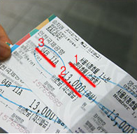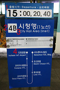 1. Destination: Printed in Korean and located on top (e.g. If the destination is Lotte Hotel Seoul nearMyeong-dong, the name of destination on the ticket will be written in Korean.)2. Bus Fare: Korean won