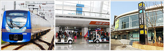 To take the AREX from the Incheon International Airport, follow the signs down to the Airport Transportation Center on B1 level. Free electric cart services for passengers with heavy bags, senior citizens, and passengers with disabilities are stationed between the Airport Transportation Center and the passenger terminal as well as between the airport parking lot and the passenger terminal. Service hours for the electric carts run from 7 a.m. to 7 p.m. every day.